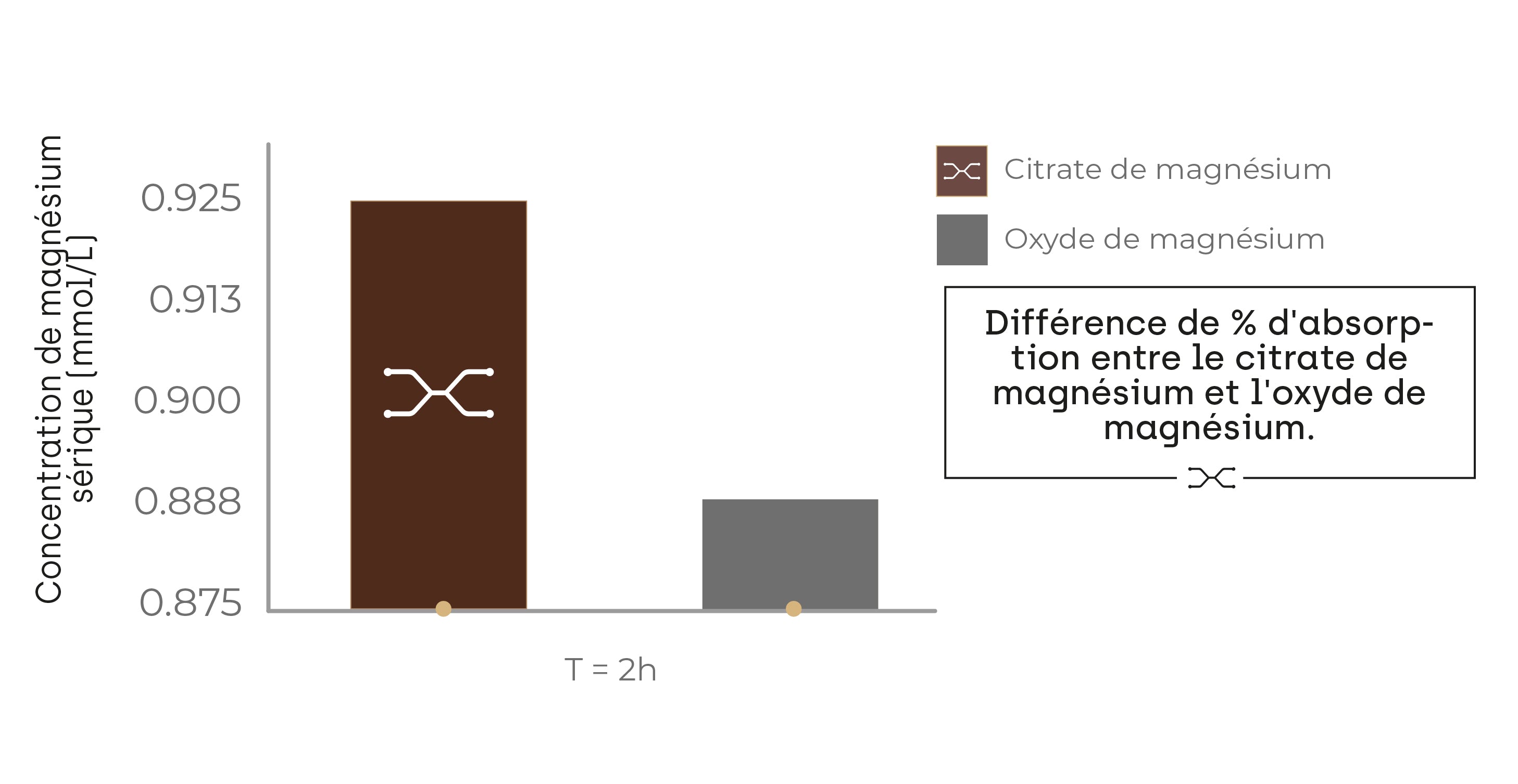 Il existe plusieurs sels de magnésium organiques et inorganiques. Les sels inorganiques sont mieux absorbés. Le citrate de magnésium est un sel inorganique avec une bonne biodisponibilité. Il augmente les concentrations de magnésium dans le cerveau et les muscles 1,5 fois plus que le magnésium libre.